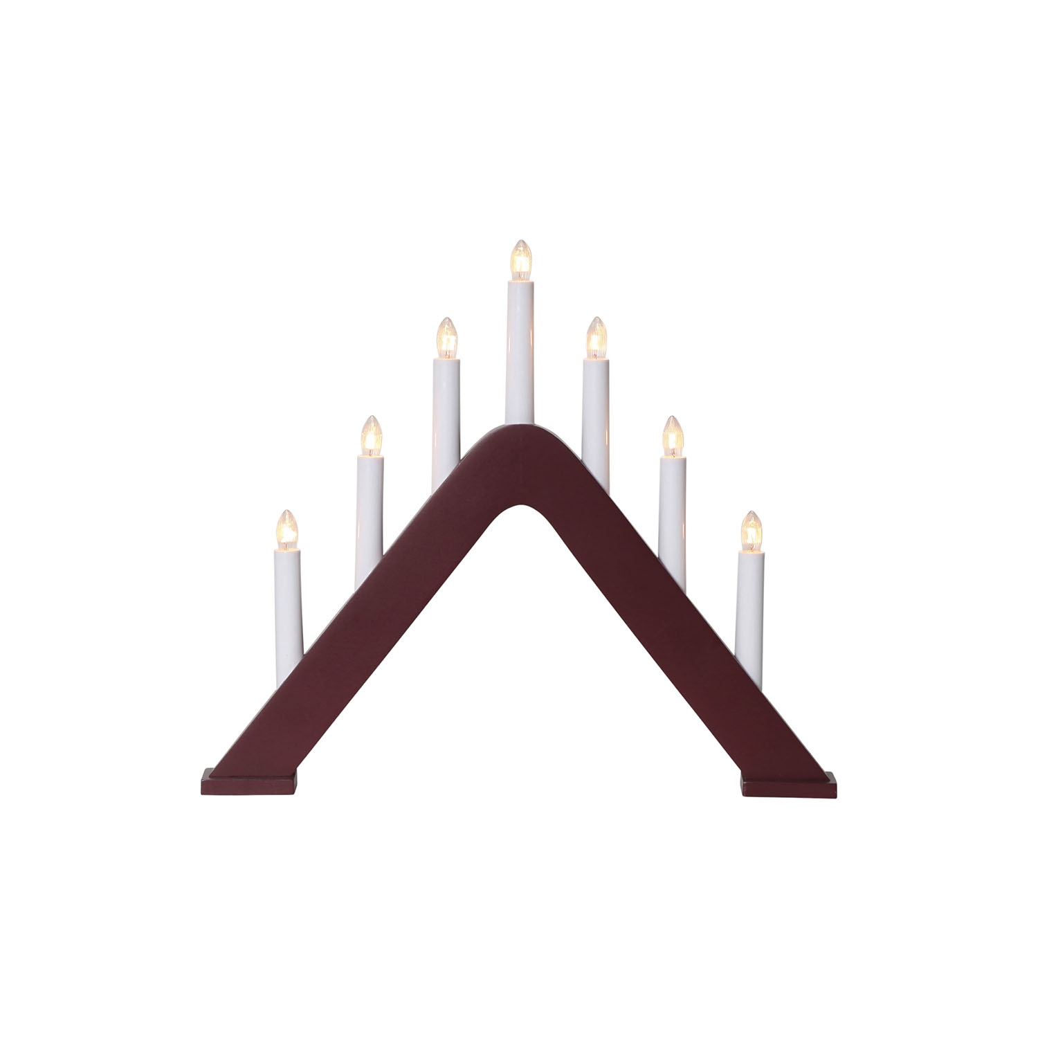 Lichterbogen ,Jarve' aus Holz, 7-flammig, austauschbare E10 Lichtquellen, dunkles Rot, warmweiß, H 36cm, B 41cm